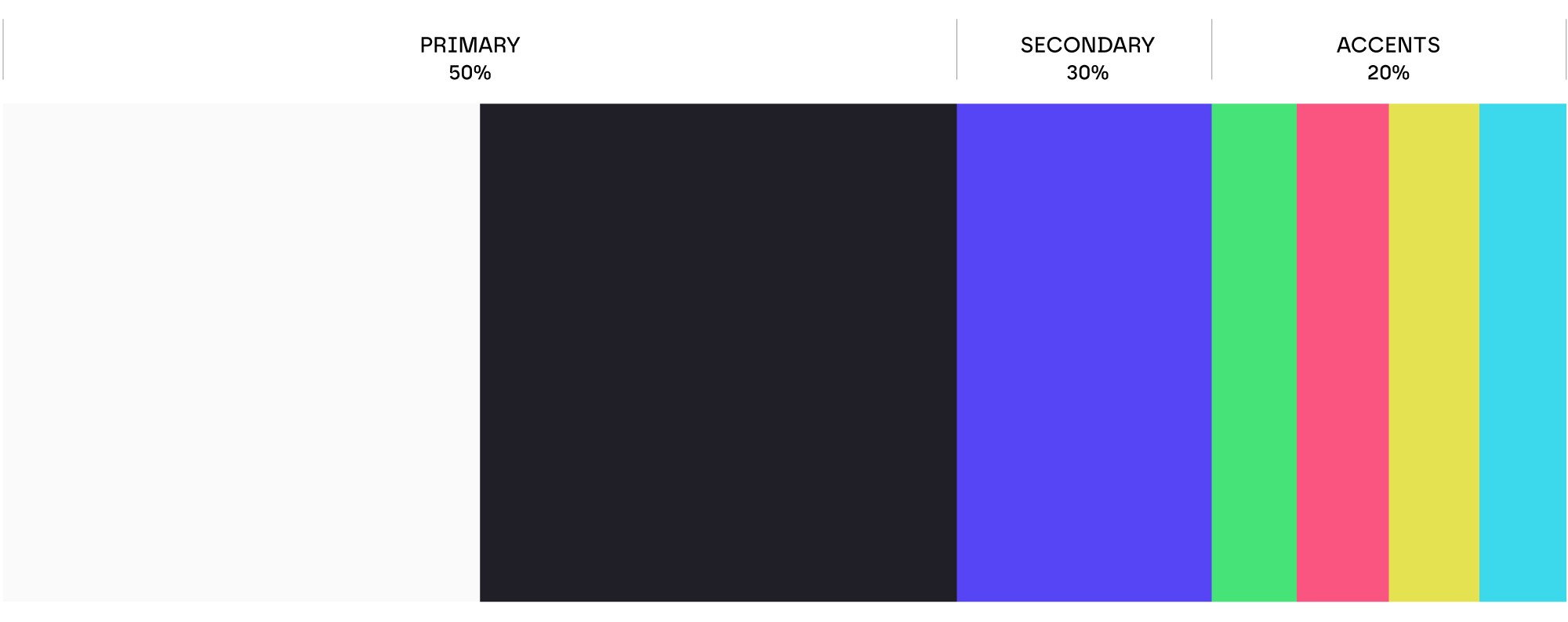 We have a collection of four vibrant accent colors that add personality and depth to our brand experience. These colors should be used primarily as accents to complement the dark grey and white core palette.