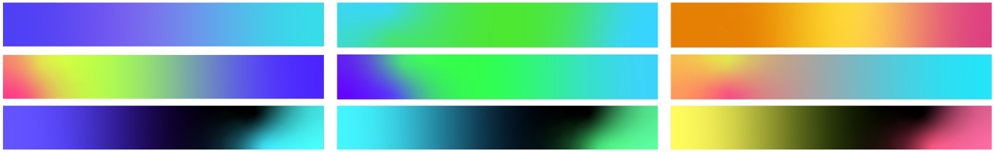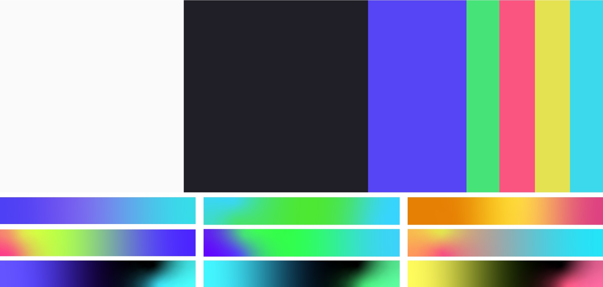 Our brand palette includes nine pre-defined vibrant gradient combinations.