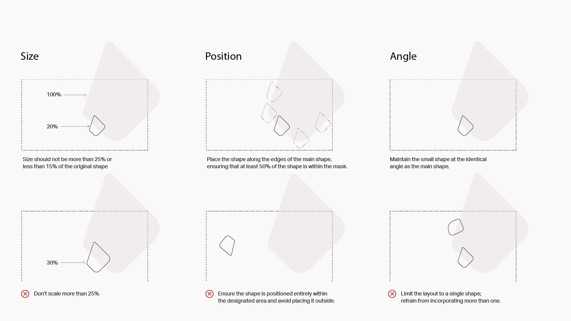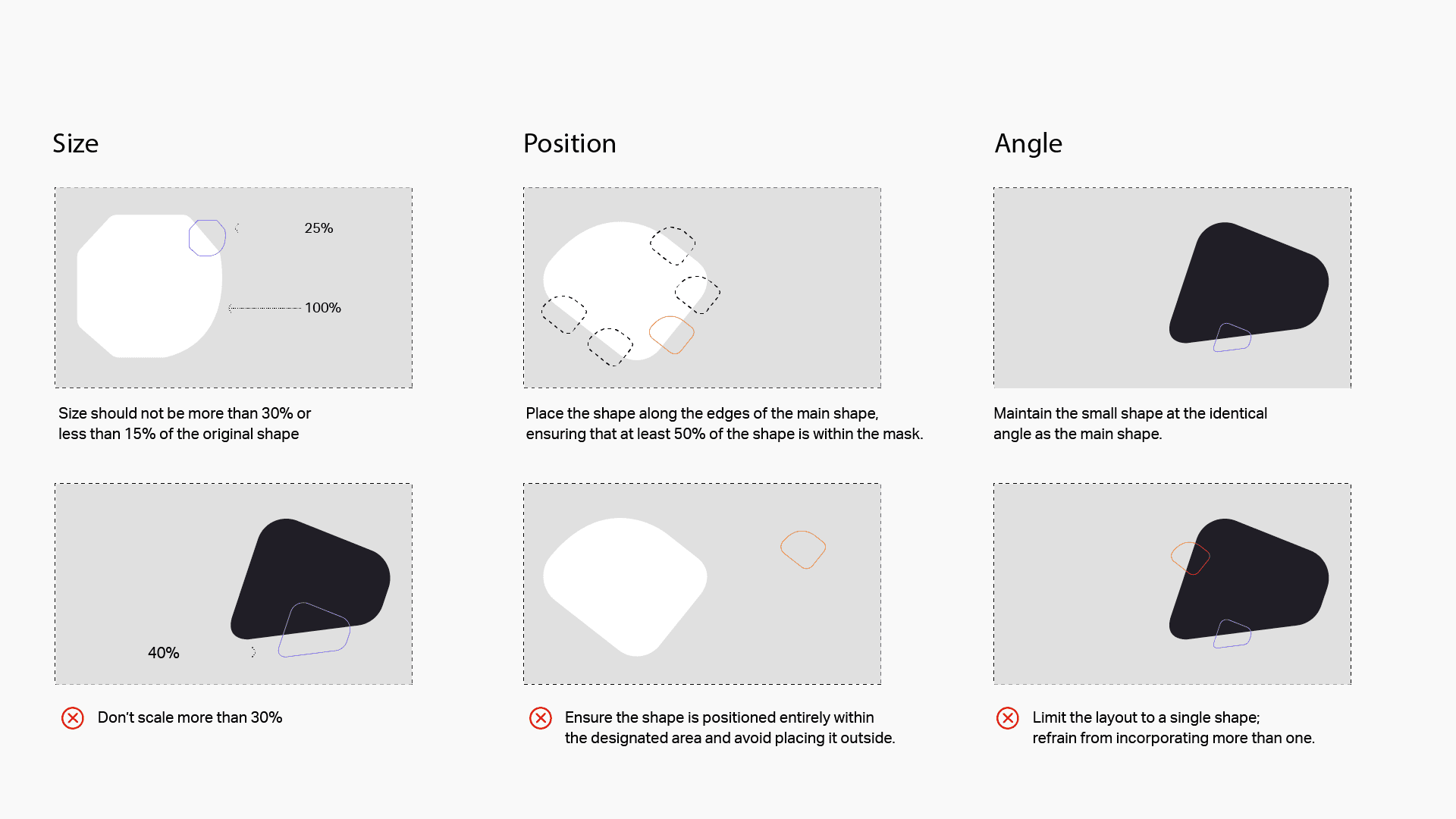 Use shape mask primarily on a dark grey or white background. In exceptional cases, the shape mask can be applied on a colored background.