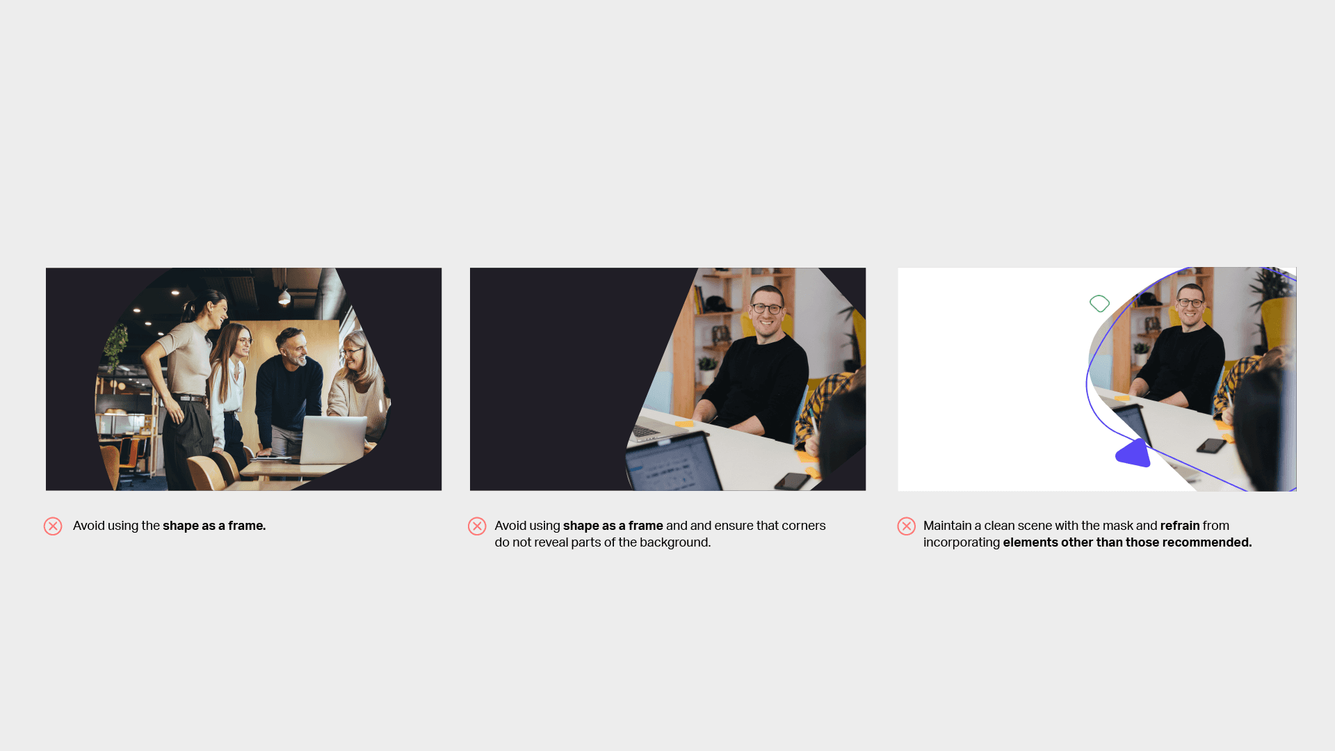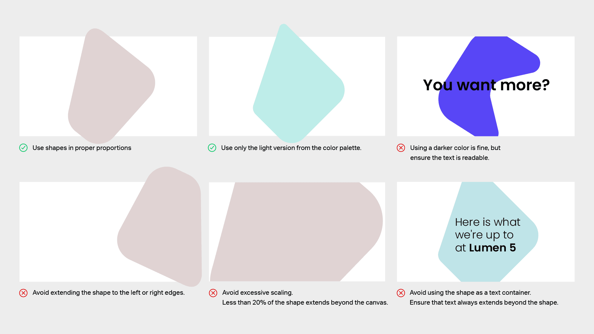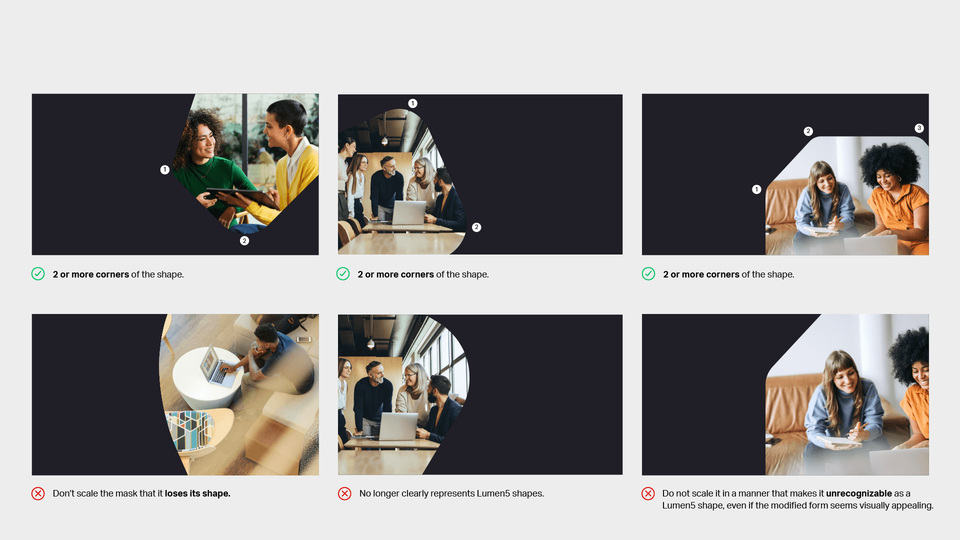 Display at least two corners of the shape to provide the mask with clear definition and make it recognizable as Lumen5 shapes.
