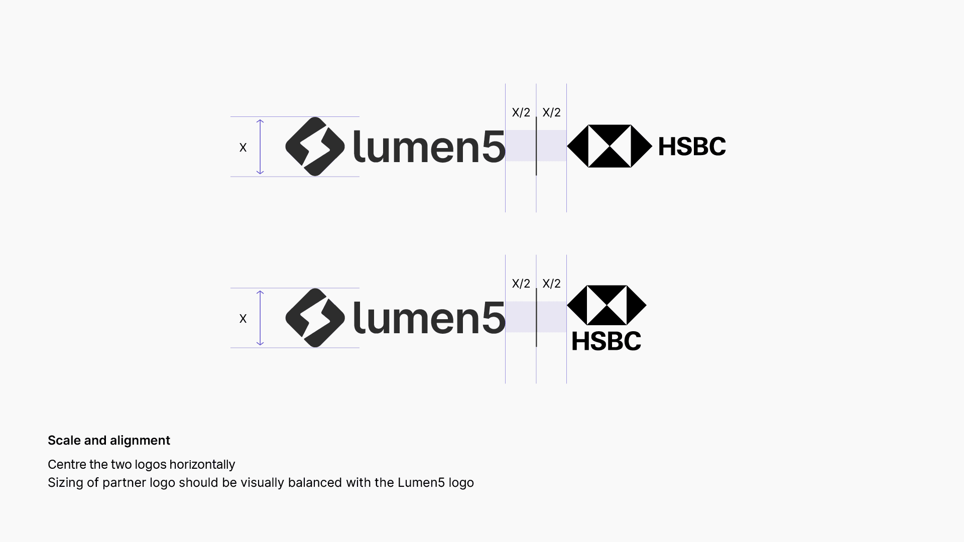 • Sizing of partner logo should be visually balanced with the Lumen5 logo