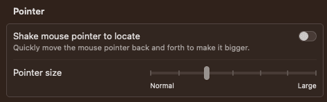 For improved visibility, the size of the mouse pointer should be increased, and here is the guide: https://www.macrumors.com/how-to/make-mac-cursor-mouse-pointer-bigger/ Setting the cursor size (attached screenshot below)