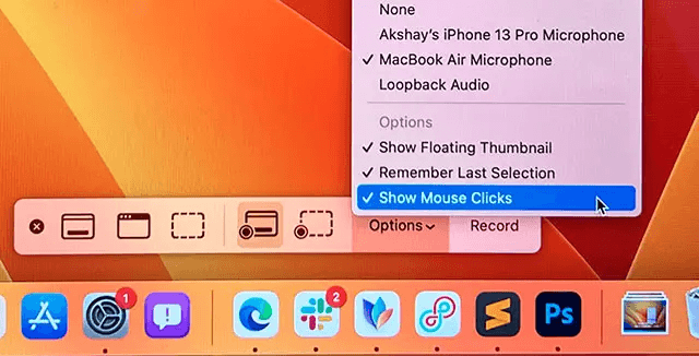 Plus in the screen recording option, the show mouse pointer should be enabled (attached screenshot below)