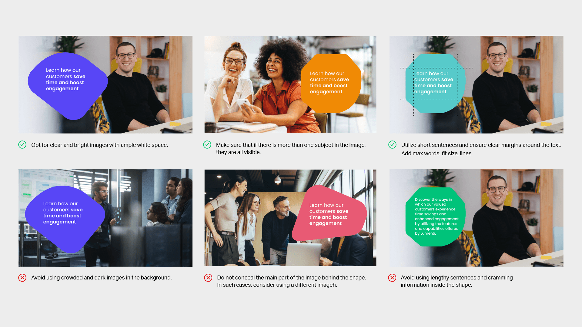 Use only three specific Lumen5 shapes as text placeholders over an image.